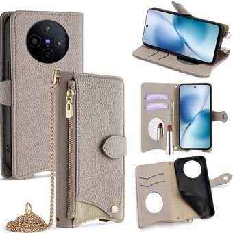 For vivo X200s Crossbody Chain Fishtail Litchi Leather Phone Case(Grey)