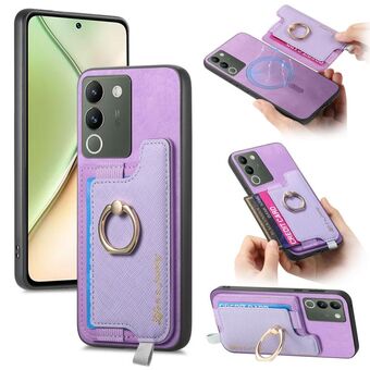 For vivo Y200 / V29e Retro Magsafe Cross Leather Ring Holder Card Bag Phone Case(Purple)