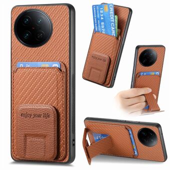 For vivo X90 Carbon Fiber Card Bag Fold Stand Phone Case(Brown)