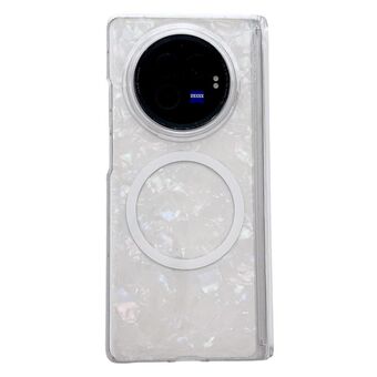 For vivo X Fold3 Magnetic Axis Pearlescent Shell Texture MagSafe Phone Case(White)