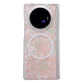 For vivo X Fold3 Magnetic Axis Pearlescent Shell Texture MagSafe Phone Case(Pink Green)