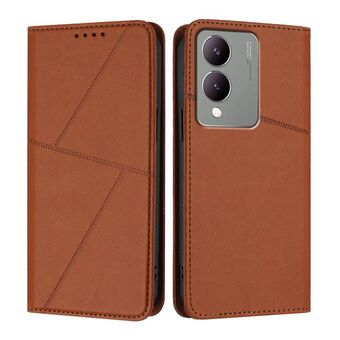 For vivo Y17s 4G Global / Y28 5G India Strong Magnetic Frosted Flip Leather Phone Case(Coffee Color)
