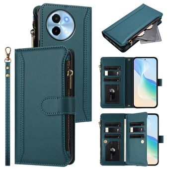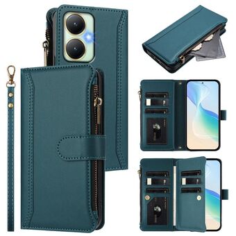 For vivo Y38 5G Global / T3X 5G Global Magnetic Closure 9 Card Slots Zipper Leather Case with Hand Strap(Dark Green)