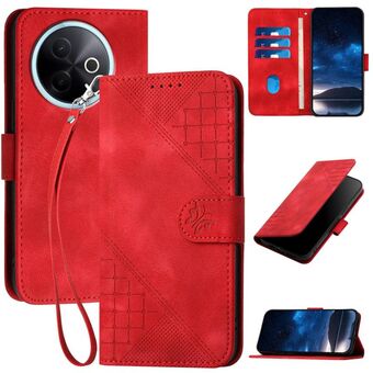For vivo Y39 5G Grid Butterfly Embossed Pattern Leather Phone Case with Lanyard(Red)