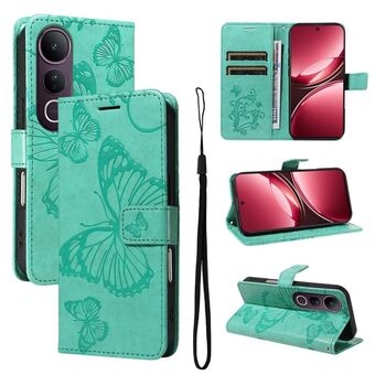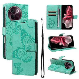 For vivo V50 Lite 5G Global 3D Butterfly Embossed Pattern Flip Leather Phone Case(Green)