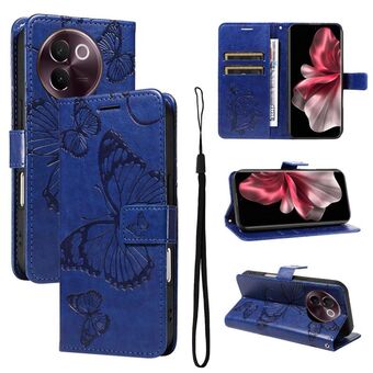 For vivo V30E / V40 Lite Global 3D Butterfly Embossed Pattern Flip Leather Phone Case(Blue)