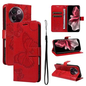 For vivo V30E / V40 Lite Global 3D Butterfly Embossed Pattern Flip Leather Phone Case(Red)