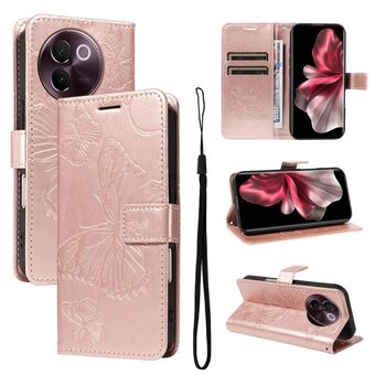 For vivo V30E / V40 Lite Global 3D Butterfly Embossed Pattern Flip Leather Phone Case(Rose Gold)
