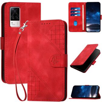 For vivo S9e Grid Butterfly Embossed Pattern Leather Phone Case with Lanyard(Red)