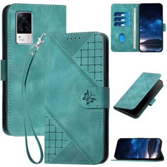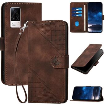 For vivo S9e Grid Butterfly Embossed Pattern Leather Phone Case with Lanyard(Coffee)
