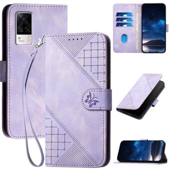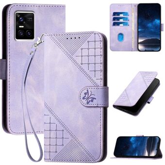 For vivo S10 / S10 Pro Grid Butterfly Embossed Pattern Leather Phone Case with Lanyard(Light Purple)