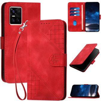 For vivo S10 / S10 Pro Grid Butterfly Embossed Pattern Leather Phone Case with Lanyard(Red)