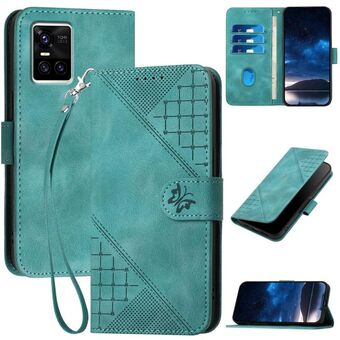 For vivo S10 / S10 Pro Grid Butterfly Embossed Pattern Leather Phone Case with Lanyard(Black)