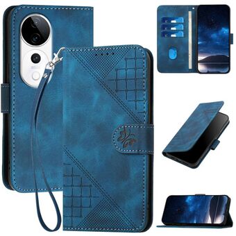 For vivo S9e Grid Butterfly Embossed Pattern Leather Phone Case with Lanyard(Black)