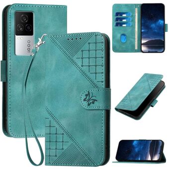 For vivo iQOO 7 India / iQOO Neo5 Grid Butterfly Embossed Pattern Leather Phone Case with Lanyard(Black)