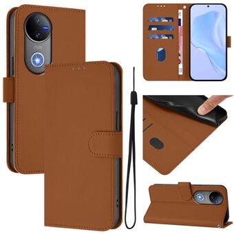 For vivo V50 Global Skin Feel Solid Color Leather Phone Case with Lanyard(Brown)
