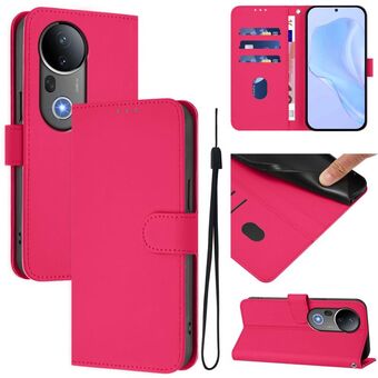 For vivo Y300 Skin Feel Solid Color Leather Phone Case with Lanyard(Pink)