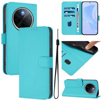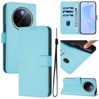 For vivo Y300 Pro Skin Feel Solid Color Leather Phone Case with Lanyard(Lake Blue)