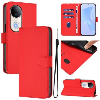 For vivo Y300 Pro Skin Feel Solid Color Leather Phone Case with Lanyard(Rose Red)