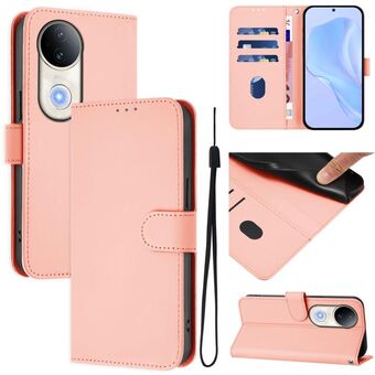 For vivo S20 Skin Feel Solid Color Leather Phone Case with Lanyard(Pink)