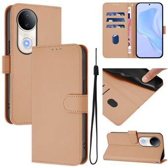 For vivo S20 Skin Feel Solid Color Leather Phone Case with Lanyard(Brown)