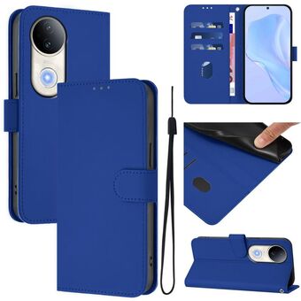 For vivo Y300 Pro Skin Feel Solid Color Leather Phone Case with Lanyard(Navy Blue)