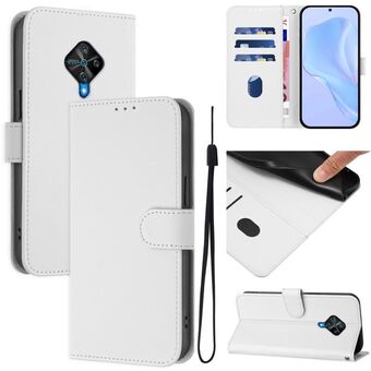 For vivo Y53S 4G / Y51A 2021 Skin Feel Solid Color Leather Phone Case with Lanyard(White)