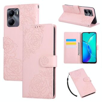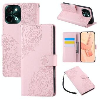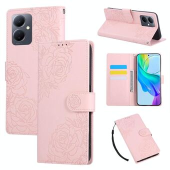 For vivo Y56 5G Global Rose Flower Embossed 3-Card Slots Leather Phone Case(Pink)
