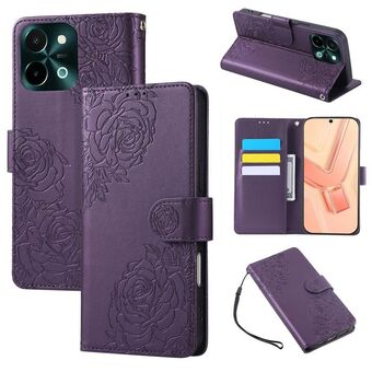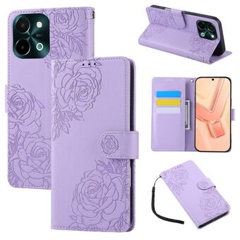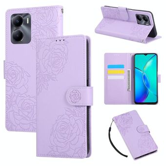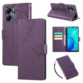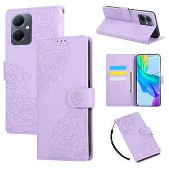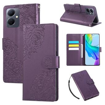 For vivo Y56 5G Global Rose Flower Embossed 3-Card Slots Leather Phone Case(Purple)