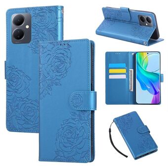 For vivo Y78 5G Global Rose Flower Embossed 3-Card Slots Leather Phone Case(Blue)