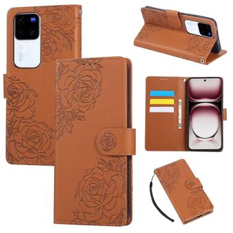 For vivo V300 5G / V300 Pro 5G Rose Flower Embossed 3-Card Slots Leather Phone Case(Brown)