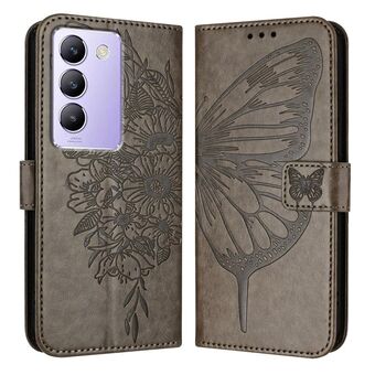 For vivo Y100 5G IDN / Y200e 5G Global Embossed Butterfly Leather Phone Case(Grey)