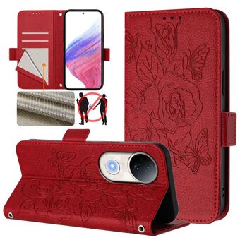 For vivo S20 5G Embossed Rose RFID Anti-theft Leather Phone Case(Red)