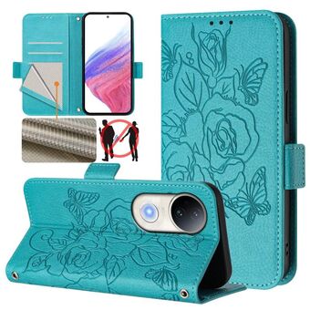 For vivo S20 5G Embossed Rose RFID Anti-theft Leather Phone Case(Light Blue)