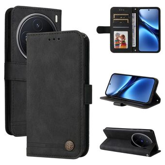 For vivo X200 Skin Feel Life Tree Metal Button Leather Phone Case(Black)