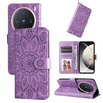 For vivo X200 Pro mini Embossed Sunflower Leather Phone Case(Purple)