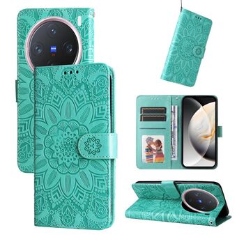 For vivo X200 Pro mini Embossed Sunflower Leather Phone Case(Green)