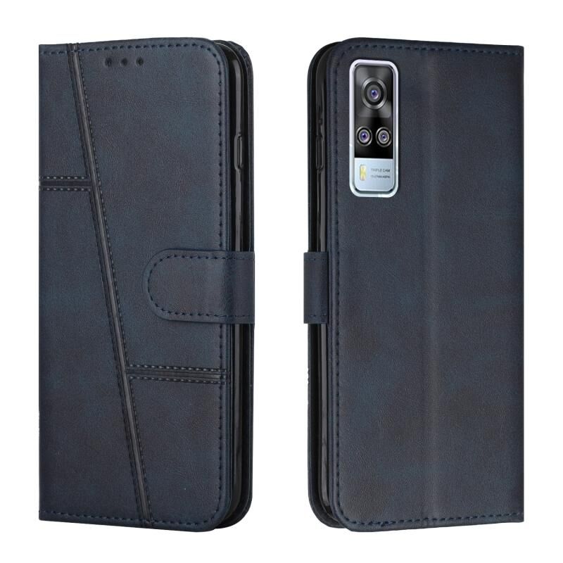 vivo Y51 2020/Y51 2020 Δεκέμβριος/Y31 2020/Y51a ραφή μοσχάρι υφή αγκράφα δερμάτινη θήκη τηλεφώνου (μπλε)