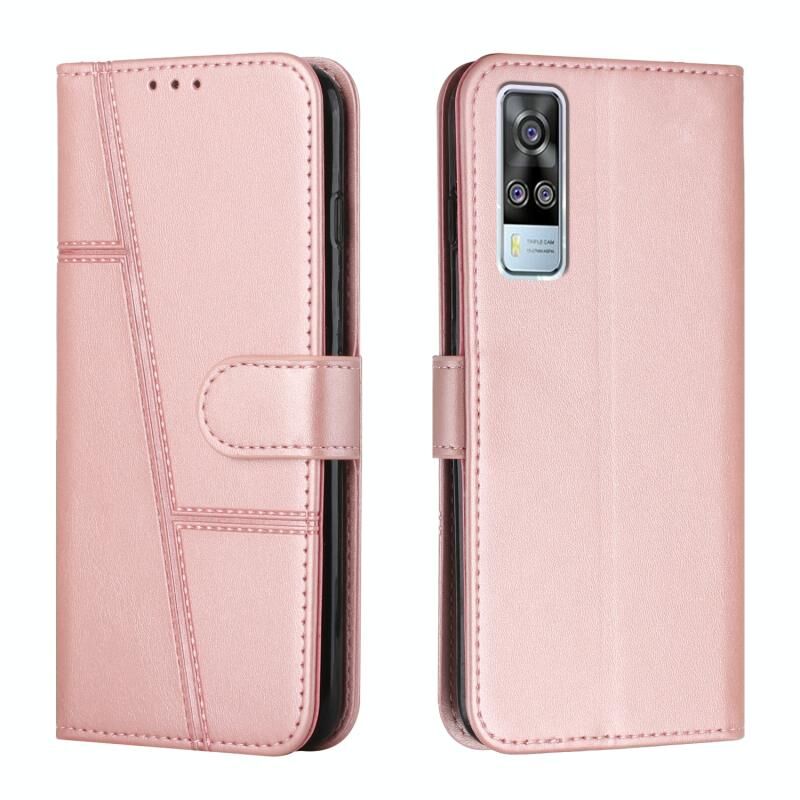 vivo Y51 2020/Y51 2020 Δεκέμβριος/Y31 2020/Y51a ραφή μοσχάρι υφή αγκράφα δερμάτινη θήκη τηλεφώνου (ροζ)