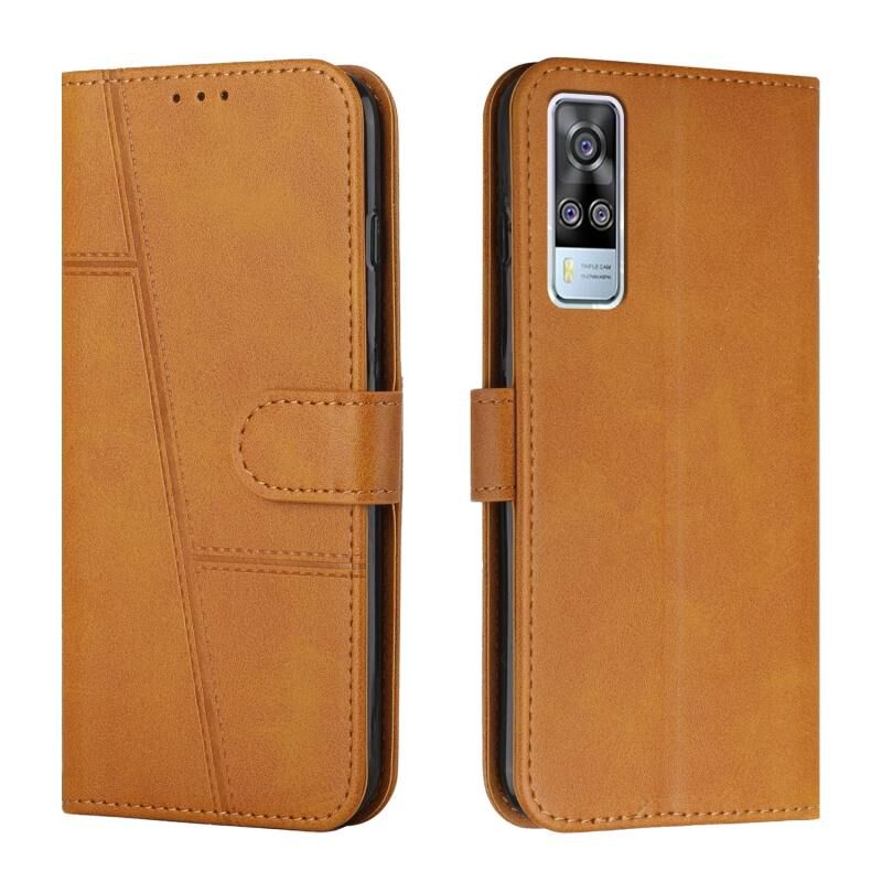 vivo Y51 2020/Y51 2020 Δεκέμβριος/Y31 2020/Y51a ραφή μοσχάρι υφή αγκράφα δερμάτινη θήκη τηλεφώνου (κίτρινο)