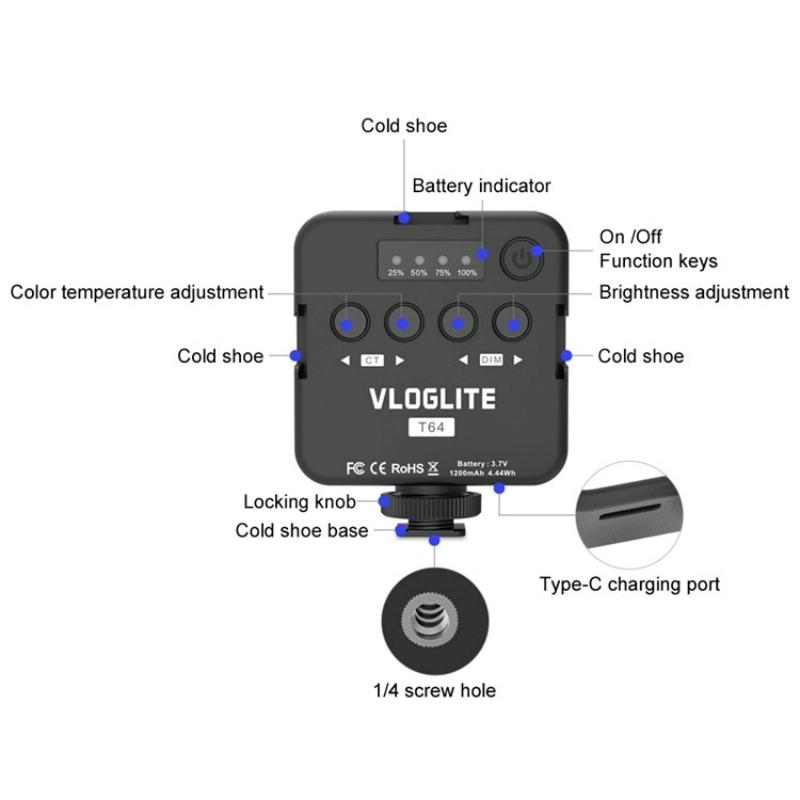 3. 64 LED light features multiple brightness levels and 2 color temperature adjustable