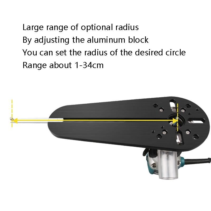 1. Λείες καμπύλες γραμμές 2. Η ακτίνα μπορεί να επιλεγεί σε ένα μεγάλο εύρος. Ρυθμίζοντας το μπλοκ αλουμινίου, μπορεί να ρυθμιστεί η ακτίνα του επιθυμητού κύκλου, το εύρος είναι περίπου 1-34cm 3. Με τη χρήση βοηθημάτων φρεζαρίσματος, μπορείτε εύκολα να φτιάξετε μια ποικιλία δαχτυλιδιών, κύκλων, κοίλων κύκλων κ.λπ. Οι φρεζαρισμένοι κύκλοι είναι εξαιρετικοί και γενναιόδωροι, και οι χρήσεις είναι ευέλικτες και μεταβλητές. 4. Εφαρμόσιμη μηχανή περιμετρικής κοπής: -Το πακέτο Α μπορεί να προσαρμοστεί -Το πακέτο Β είναι κατάλληλο για Makita 3700b/3709, κατάλληλο για Aoben at3300a, κατάλληλο για Wickers WU619, κατάλληλο για Dongcheng M1P-FF02-6/M1P-FF03-6/M1P-FF04-6 -Το πακέτο C είναι κατάλληλο για Bosch GMRI, κατάλληλο για Makita RT0700C, κατάλληλο για Prejet -Το πακέτο D είναι κατάλληλο για Dayou 1326-5-6, κατάλληλο για Bosch GKF550 5. Βάρος: περίπου 1000 γραμμάρια 6. Μέγεθος συσκευασίας: περίπου 41x23x6.5 cm Λίστα συσκευασίας: -Σταθερό σώμα x1 -Ρυθμιζόμενο μπλοκ αλουμινίου x1 -Λαβή ρύθμισης x1 -Μπουλόνι κεντρικής υποδοχής φρεζαρίσματος x2 -Κεντρικός δακτύλιος τοποθέτησης x1 -Τρυπάνι x1 -Βίδες στήριξης x5 -Κλειδί x1 -Περιοριστικός δακτύλιος x1 -Ράβδος τοποθέτησης x1