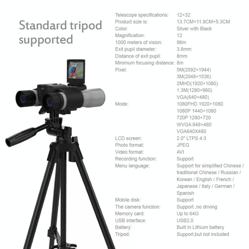 2. It perfectly realizes the dual functions of telescope digital imaging and video recording and it can take a clear picture in darker environment
