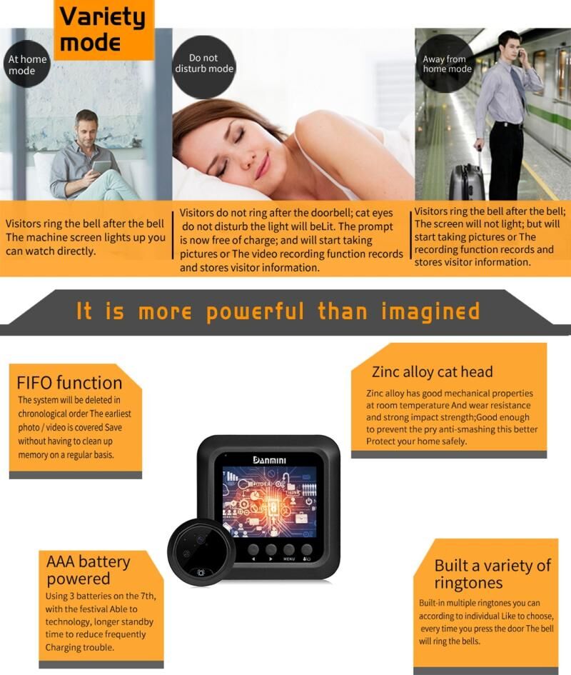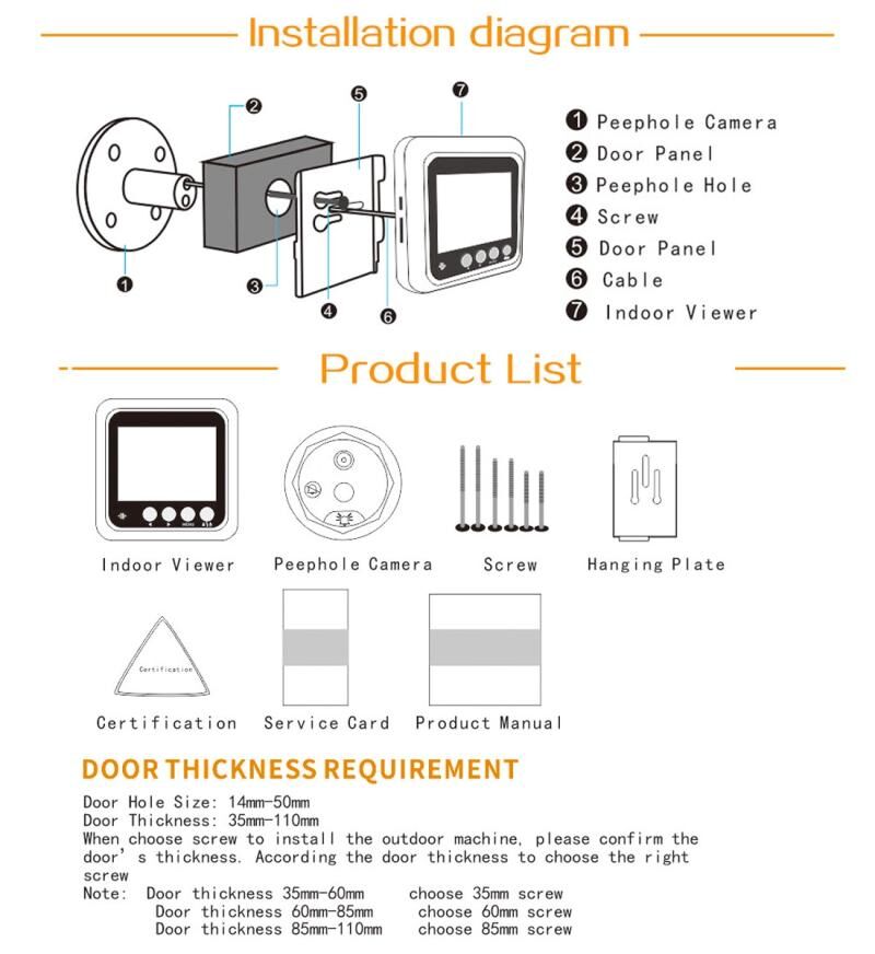 5. Η έξυπνη οθόνη peephole δημιουργεί τον νέο αιώνα. Είναι η τελευταία γραμμή ασφάλειας στο σπίτι. Χωρίς να καταστρέφει τη δομή της πόρτας, με την υπάρχουσα χρήση του ματιού, χωρίς τρύπημα, χωρίς καλωδίωση, μπορεί να χρησιμοποιηθεί μετά την εγκατάσταση. Το προϊόν είναι εξοπλισμένο με έξυπνο λειτουργικό σύστημα με ανθρωποκεντρικό σχεδιασμό πολλαπλών λειτουργιών. Απλό και βολικό για ηλικιωμένους και παιδιά. Για την ασφάλεια του σπιτιού σας.