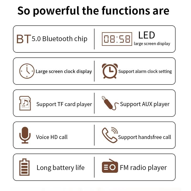 7. Support TF card, 3.5mm audio input, Bluetooth
