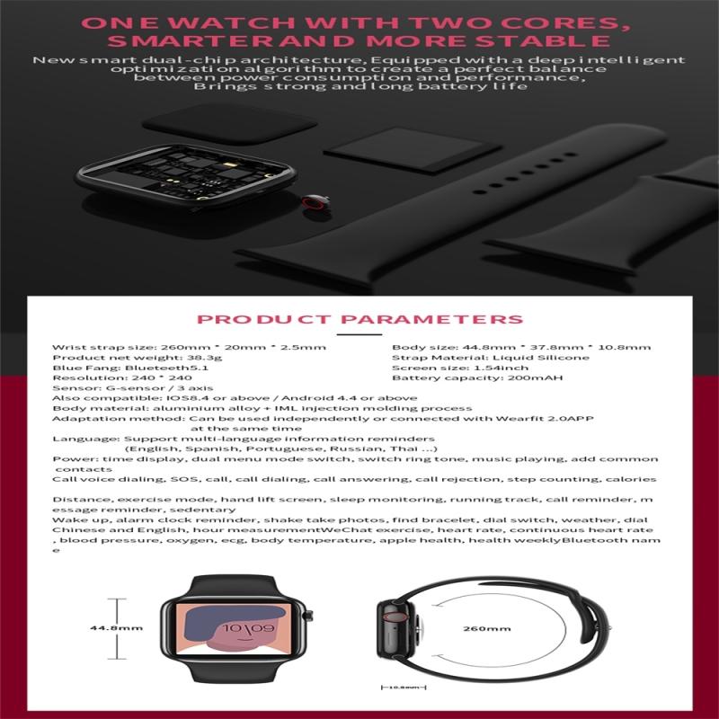 W98 Plus 1.54 inch Color Screen Smart Watch, IP67 Waterproof, Support Temperature Monitoring/Heart Rate Monitoring/Blood Pressure Monitoring/Blood Oxygen Monitoring/Sleep Monitoring(White)