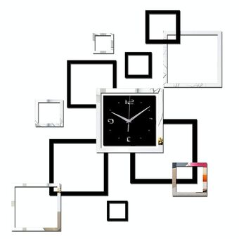 Σαλόνι ρολόι τοίχου Δημιουργικό ρολόι Ακρυλικό DIY καθρέφτη τοίχου Αυτοκόλλητα διακοσμητικά μαύρα ασημένια τετράγωνο DIY ρολόι