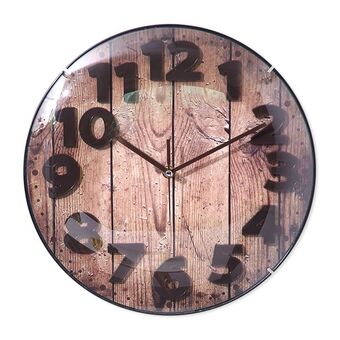 Απλό ρετρό απομίμηση ξύλου κόκκων τρισδιάστατο ψηφιακό στρογγυλό ρολόι τοίχου