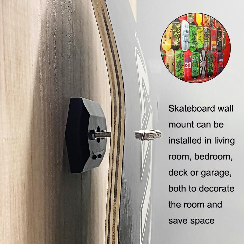1. High Load Capacity: our skateboard hangers are made of reinforced thermoplastic with stainless steel screws and bolts to ensure your skateboard is securely displayed on the wall