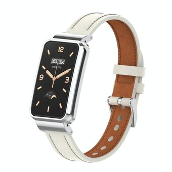 For Xiaomi Mi Band 7 Pro Microfiber Leather Metal Frame Watch Band(Warm White + Bright Silver Case)